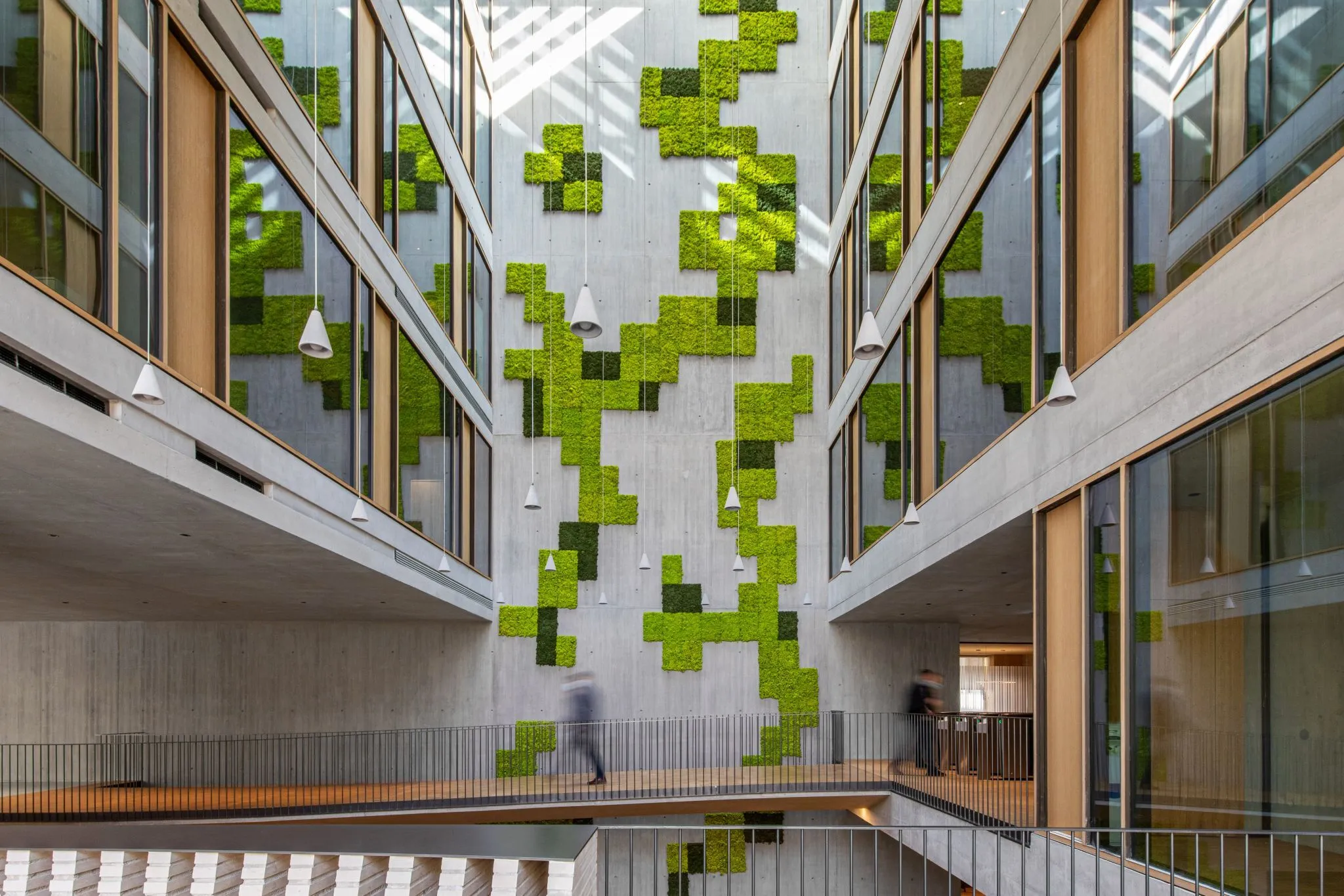 • Nivelul de iluminat la birouri este păstrat constant cu ajutorul lămpilor care detectează nivelul de lumină naturală și compensează în timp real cu iluminat artificial. Lumina este pe bază de senzori, controlată prin BMS (building management system), ceea ce reduce cu aproximativ 30% necesarul de energie pentru iluminat.