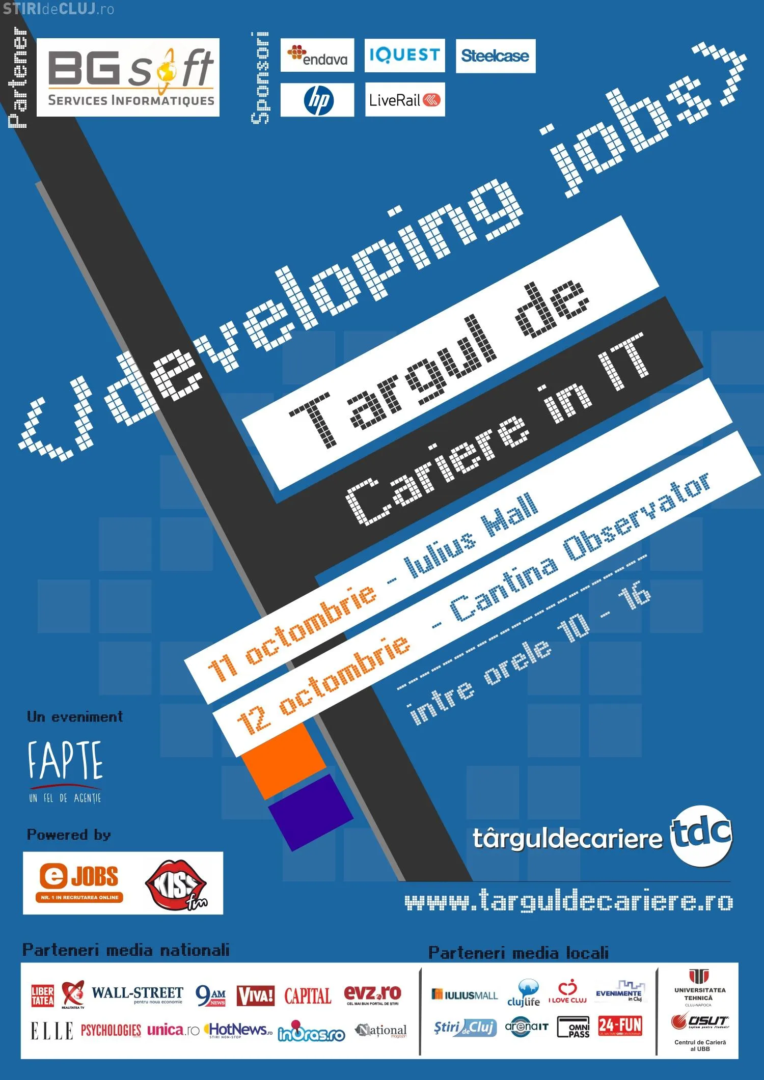 Studenții și absolvenții din domeniul IT, dar și cei care lucrează în domeniu, au posibilitatea de a descoperi oferte de joburi plătite cu sume care variază între 400 și 2.000 de euro, la Târgul de Cariere în IT, care va avea loc în 11 și 12 octombrie.