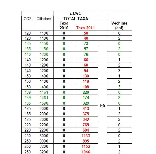 La motoarele Euro 1 de 3,2 litri, vechi de 18 ani taxa va ajunge la 12.672 de euro, faţă de 10.240 de euro cât este în prezent.