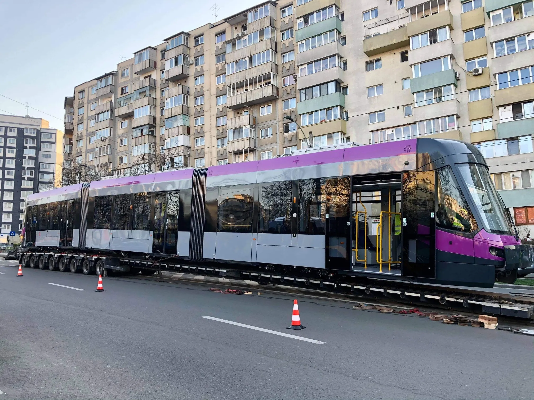 Un alt tramvai mov a fost livrat și a ajuns la Cluj-Napoca luni seara - FOTO