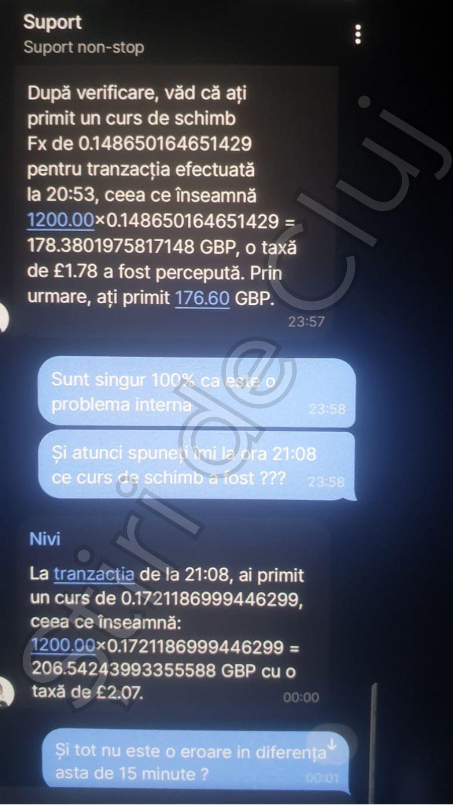 Ei spun că a fost fluctuație, dar eu spun că am fost ars (furat) ca un prost. Sunt mai sărac cu 30 de lire (174 lei) pentru că m-au furat la curs.”, a relatat un clujean pentru Știri de Cluj.