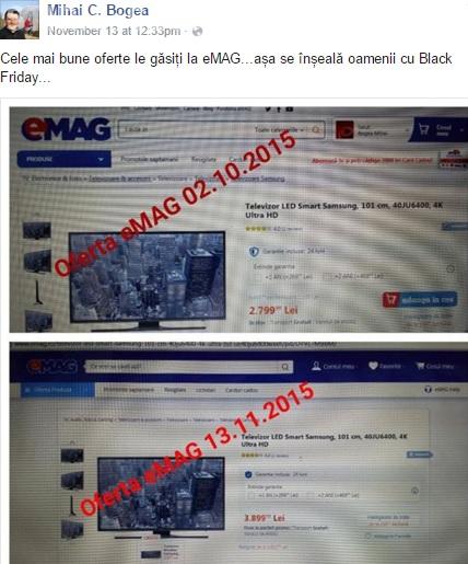 ”Cele mai bune oferte le găsiți la eMAG...așa se înșeală oamenii cu Black Friday...”, scrie Mihai pe Facebook.