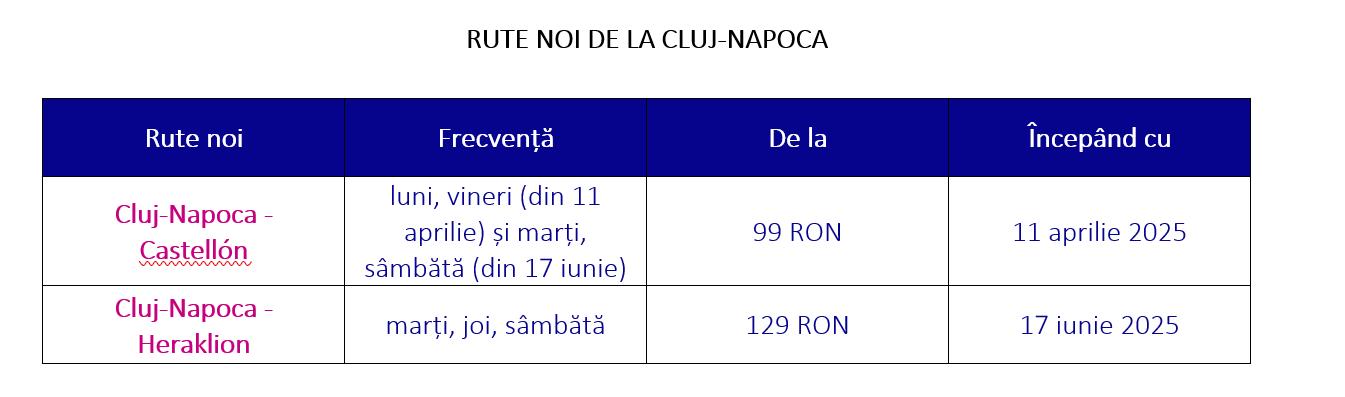 Viorel Federiga, Președintele Consiliului de Administrație al Aeroportului Internațional Cluj, a adăugat: „Apreciem decizia Wizz Air de a-și extinde operațiunile de zbor, oferind alternative de călătorie mai diverse de pe Aeroportul Internațional Cluj. Eforturile echipei aeroportului pentru îmbunătățirea conectivității regionale continuă să aducă rezultate excelente”.
