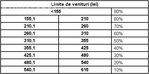 Valoarea ajutorului va fi stabilita in functie de venitul net pe membru de familie. Cei care castiga intre 540,1 si 615 lei vor primi 10% din valoarea facturii de incalzire, iar cei cu un venit de sub 155 de lei pe membru de familie vor fi primi 90% din factura (n. red. Vezi foto pentru detalii).