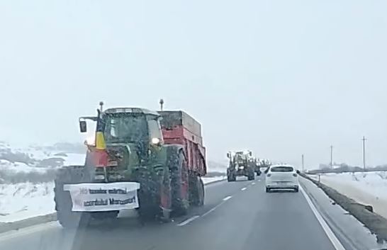 VIDEO Protest neobișnuit la Cluj-Napoca. Fermierii au format o coloană de tractoare pentru a se opune creșterii de taxe și acordului MERCOSUR