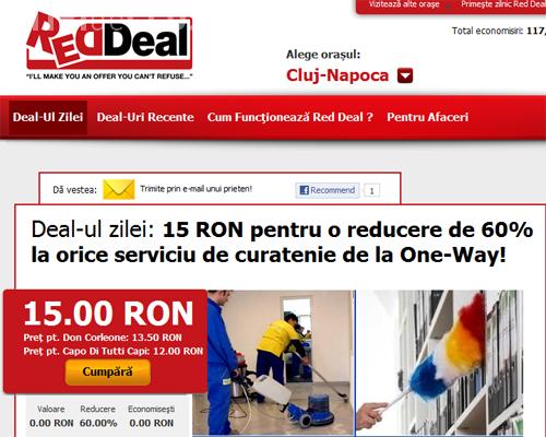 Reddeal vine astazi cu o oferta incredibila pentru femeile active care nu au timp pentru curatenia de Craciun. Platesti 15 lei si beneficiezi de o reducere de 60% la orice serviciu de curatenie de la One-Way.