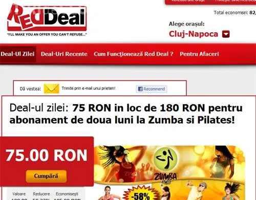 Oferta de reducere o gasiti pe www.reddeal.ro si este valabila la Zumba Club din cadrul salii Delta Gym.