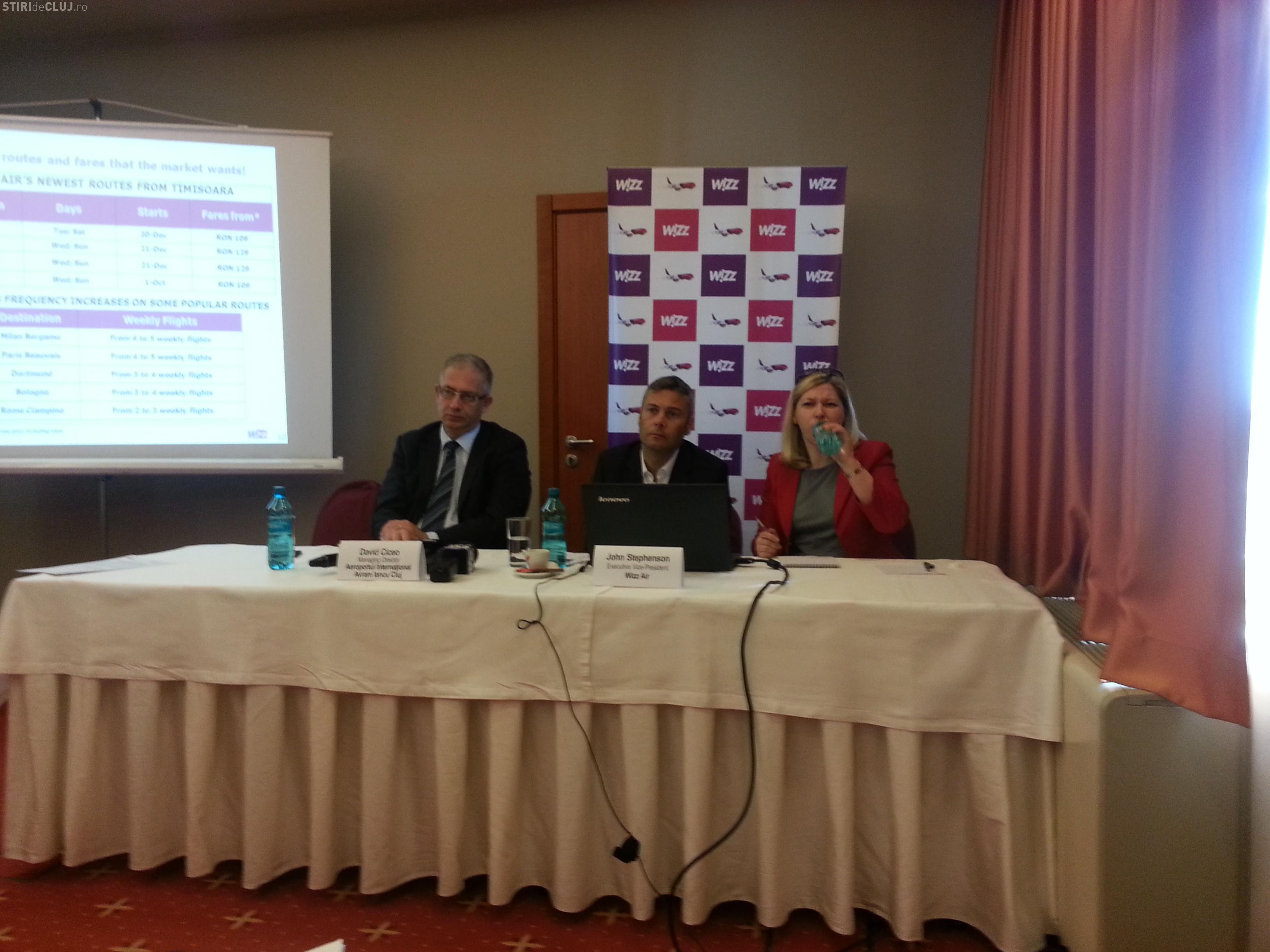 „Wizz Air alocă cea de-a patra aeronavă de tip Airbus A320 bazei de pe Aeroportul Internaţional <> Cluj ceea ce înseamnă extinderea operaţiunilor de pe acest aeroport şi creşterea capacităţii cu 30 la sută. De asemenea, lansăm patru noi rute, de două ori spre săptămână, spre Koln, Nuremberg, Malmo şi Geneva, care vor fi operate din octombrie şi decembrie, astfel încât putem oferi un total de 20 de rute internaţionale spre zece ţări. De asemenea, am crescut şi frecvenţa zborurilor săptămânale spre destinaţii mai vechi, cum sunt Milano, Paris, Roma, Dortmund şi Bologna. Sperăm că noile rute şi frecvenţele vor avea beneficii în turism”, a declarat vicepreşedinte executiv al Wizz Air, John Stephenson, în cadrul unei conferințe de presă, susținută joi, la aeroport.