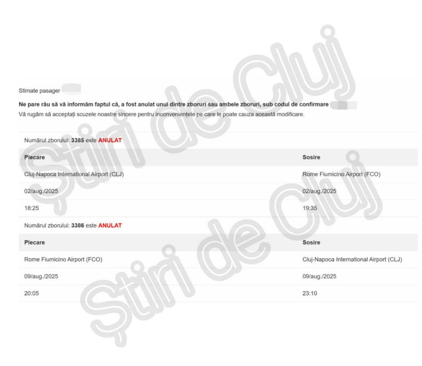 Un cititor Știri de Cluj, care își cumpărase bilete pentru perioada 2-9 august 2025, a declarat: