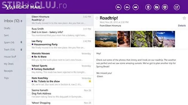 La sfarsitul anului trecut, Yahoo introducea noi schimbări pe partea de interfaţă ale serviciului Yahoo! Mail. Vehiculate cu ceva timp în urmă, acestea erau inevitabile după schimbarea CEO-ului. Pe lângă schimbări clare pentru utilizatorii Web, tot atunci utilizatorii de iPad-uri şi tablete cu Windows 8 şi Windows RT au beneficiat de interfeţe optimizate pentru a profita cât mai uşor de serviciul de poştă electronică al companiei printr-un ecran sensibil la atingere.