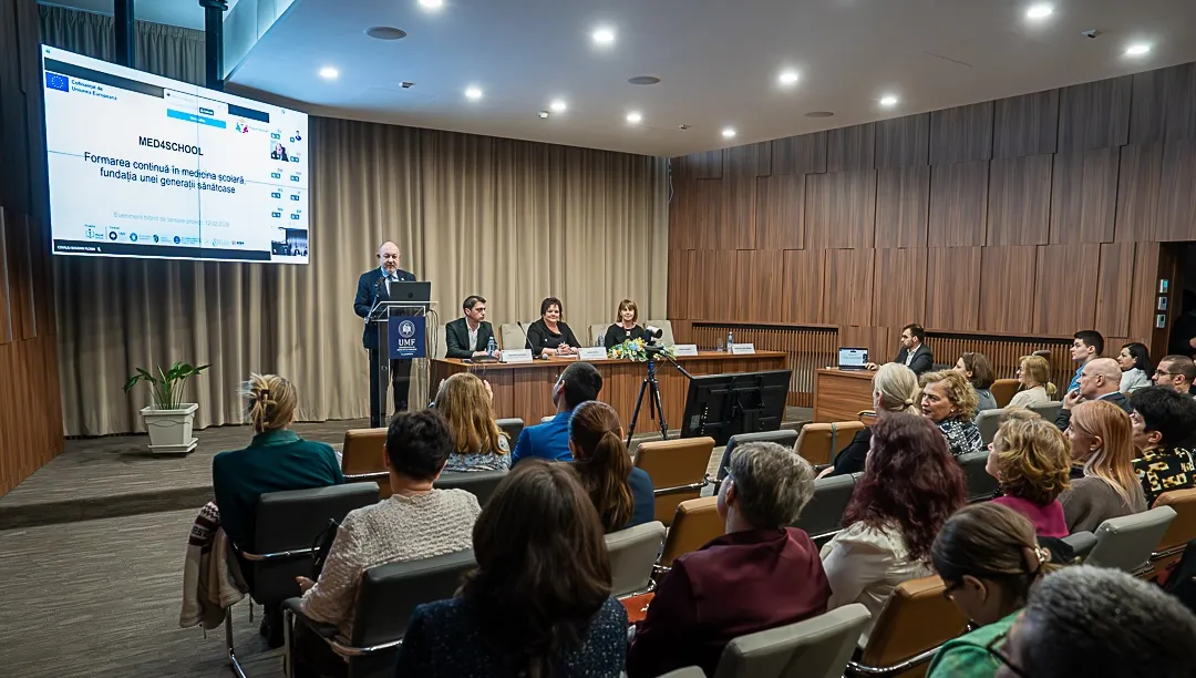 Universitatea de Medicină și Farmacie din Cluj a organizat astăzi o conferință pentru lansarea proiectului MED4SCHOOL – Formarea continuă în medicina școlară, fundația unei generații sănătoase, finanțat prin Programul Sănătate 2021–2027. Obiectivul principal este îmbunătățirea accesibilității și calității serviciilor de medicină școlară, cu accent și pe sănătatea orală, pentru copii și tineri din unitățile de învățământ.