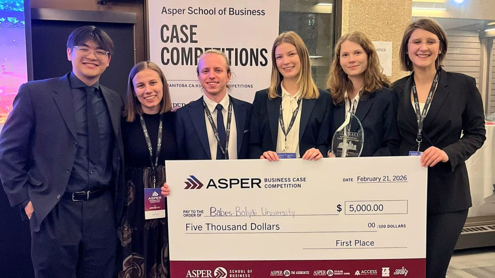 Performanță remarcabilă pentru studenții clujeni! O echipă de masteranzi ai Facultății de Științe Economice și Gestiunea Afacerilor din cadrul Universitatea Babeș-Bolyai a câștigat ediția 2026 a prestigioasei competiții internaționale Asper Business Case Competition, organizată de University of Manitoba - Asper School of Business.