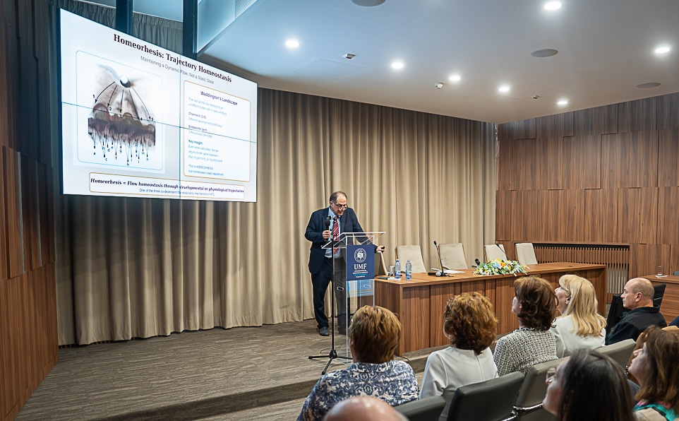 Conferința susținută luni la UMF Cluj a avut ca temă „Teoria homeodinamică a vieții. Introducere și aplicații", un subiect care îmbină biologia fundamentală cu gândirea medicală aplicată. Potrivit mesajului transmis de universitate, prezentarea a stârnit interesul publicului pe tot parcursul serii și a generat un dialog viu în sală.