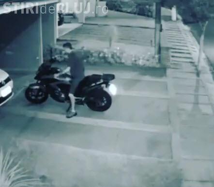 Bărbatul din imagini și-a cumpărat motocicletă nouă, dar a reușit să o dea de pământ de trei ori fără ca măcar să o miște din loc.