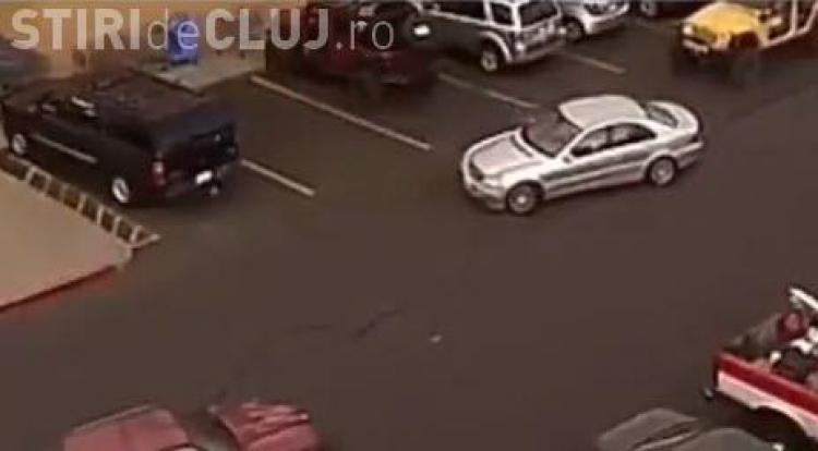 Șmecher dintr-o parcare pus la punct de un șofer cu troliu - VIDEO