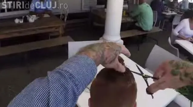Sătui de moda ”codițelor” la bărbați, mai mulți tineri s-au hotărât să ia măsuri și au început să taie părul străinilor pe stradă.