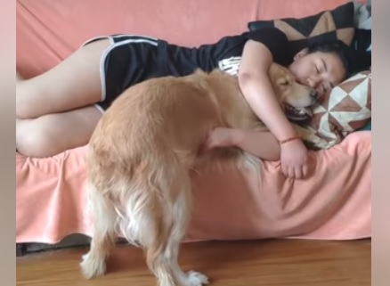 Clipul care îți va face ziua mai bună! Un golden retriever gelos se cere iubit - VIDEO