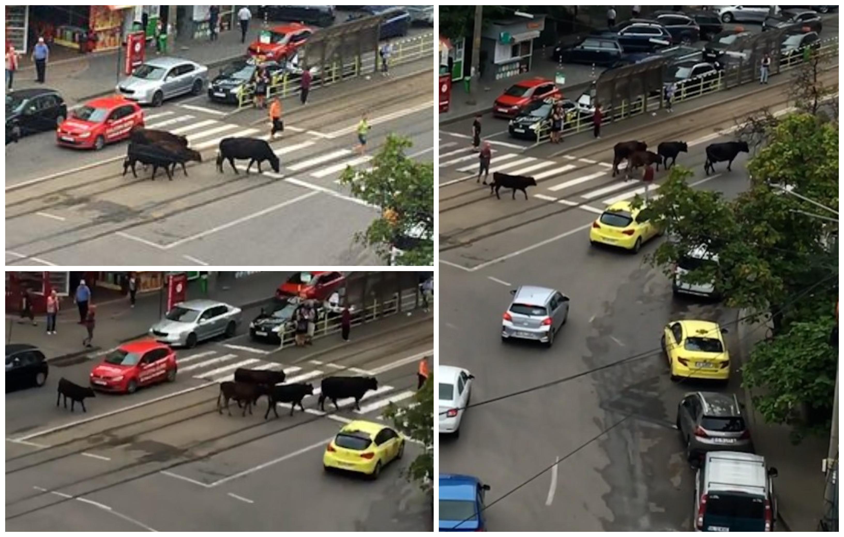 Scene mai puţin obişnuite au fost filmate vineri în traficul din Iaşi. Printre maşini şi pietoni şi-au făcut apariţia în mijlocul străzii şi şase vaci. Pe imaginile se vede cum mai multe maşini aşteaptă în coloană pentru că strada a fost blocată de animalele ieşite „la plimbare”.