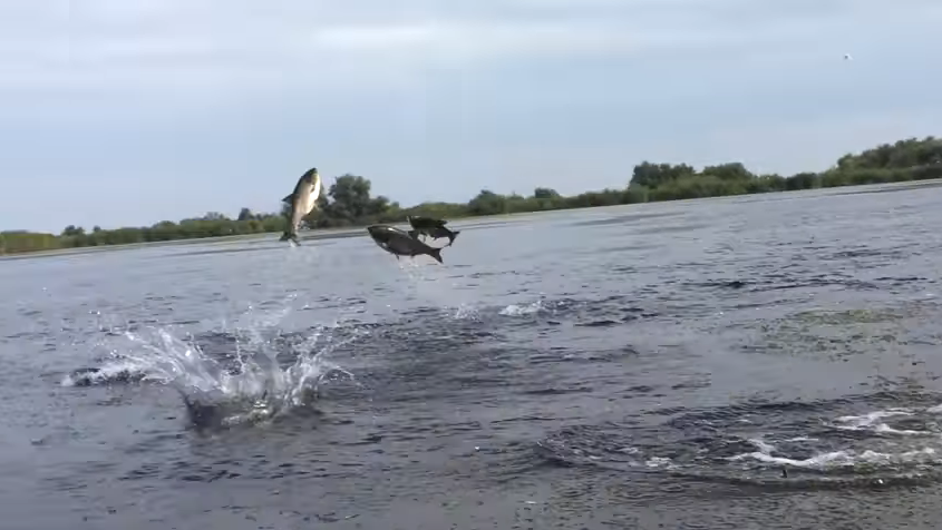 VIDEO - Spectacol în Delta Dunării: Imagini surprinzătoare cu zeci de pești care sar la suprafața apei. „Ia uite, aproape ne-a sărit în barcă!”