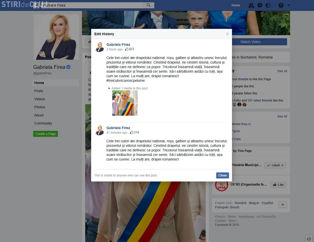 Firea a revenit și a șters din postare mesajul ”#treiculoricunoscpelume”.