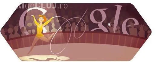 Google Doodle-ul din penultima zi a Jocurilor Olimpice de la Londra prezintă o sportivă evoluând la panglică, la proba de gimnastică ritmică.