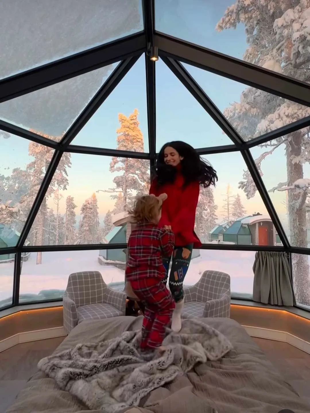 Grama a ales o cazare într-un iglu pentru priveliștea pe care o oferă. Totul este din sticlă, iar exteriorul este superb, fiind alb în jurul său.