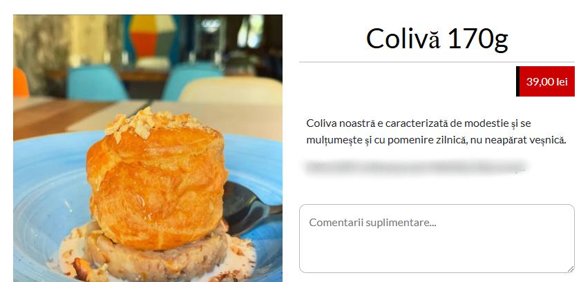 Prețurile cresc și mai mult dacă ne apropiem de Capitală, la un renumit restaurant, 170 de grame de colivă costă 39 de lei.