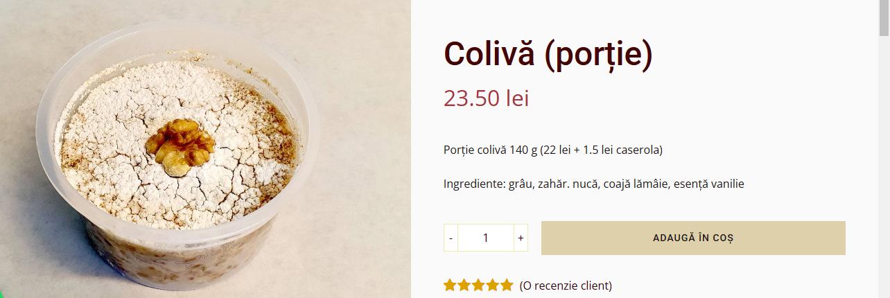 De asemenea, multe patiserii din țară au început să vândă colivă sub formă de monoporție, prețurile fiind cuprinse între 5 și 23 de lei, în fucție de cantitate.