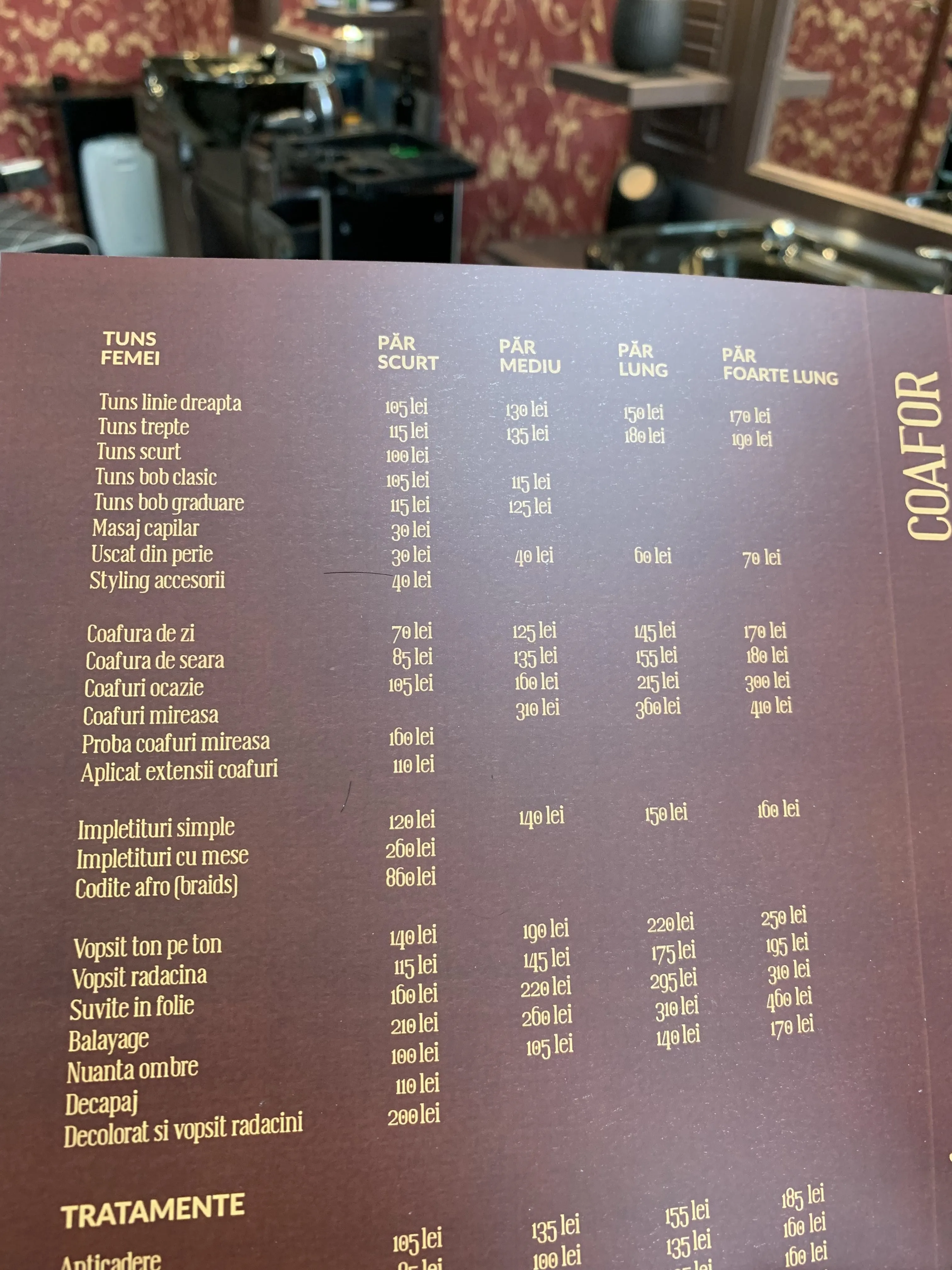 Prețurile de la Camel Salon sunt sub cele de pe piața de profil din Cluj-Napoca. Un tuns este 50 de lei, un masaj 30 de lei, iar un pachet complet pentru bărbați: tuns + barbă + mască facială +narghilea 100 de lei.