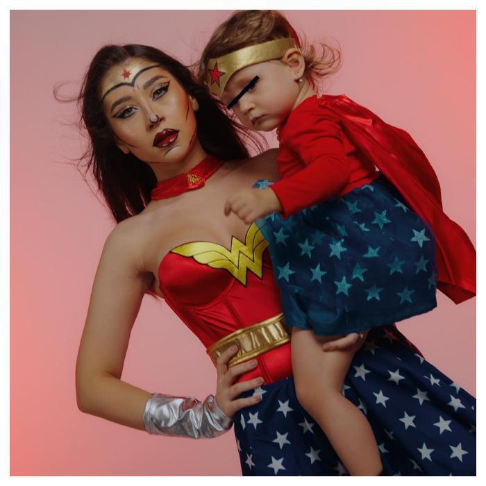 Alexia Eram a apărut în două costumații cu care a atras aprecierile internauților. În una din imagini fiica Andreei Esca apare într-un costum de Catwoman, iar în a doua este Prințesa Peach, în timp ce Mario Fresh s-a îmbrăcat în Mario, personajul din jocul video.
