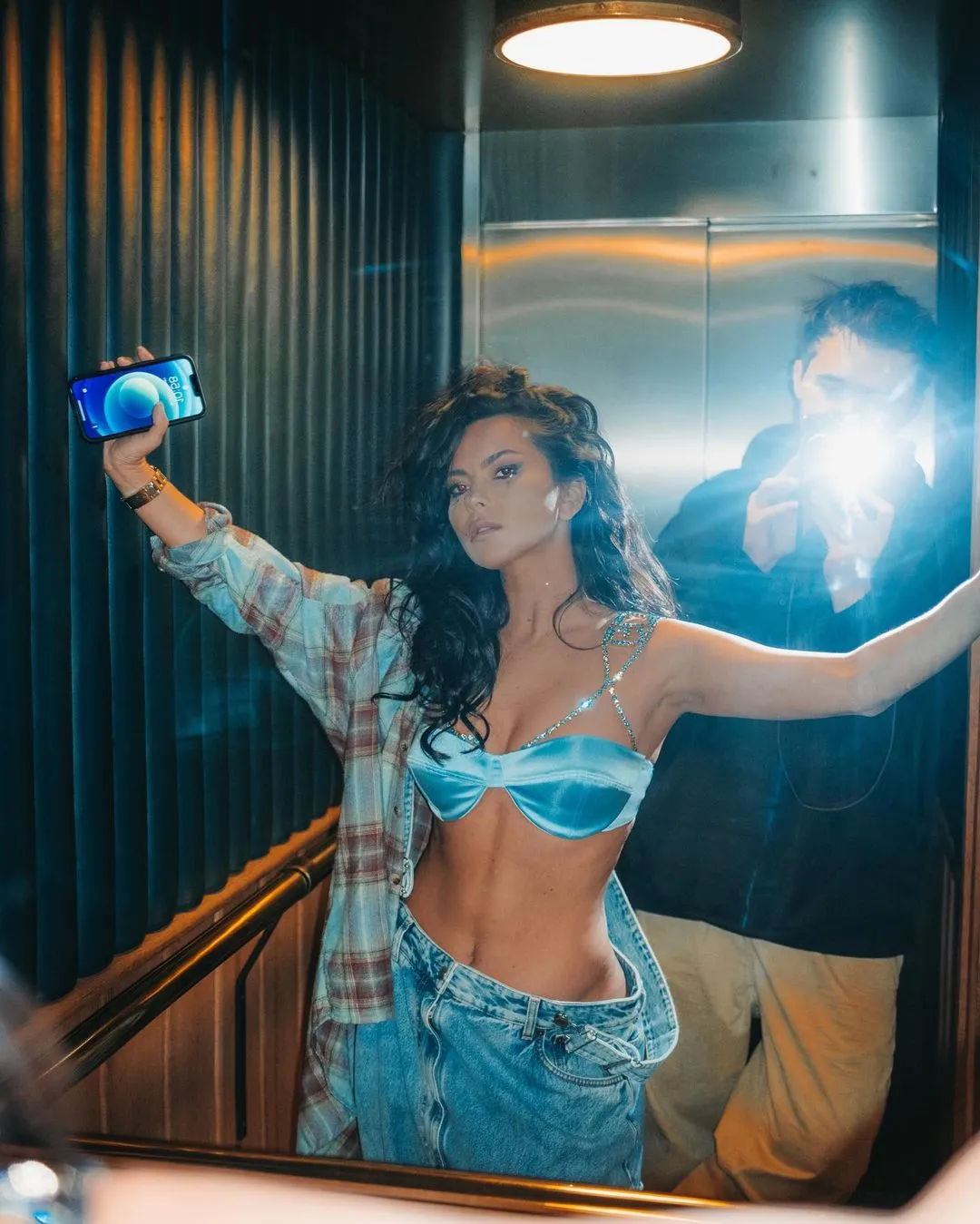 Inna a pozat într-o pereche de blugi stil boyfriend, dar fără lenjerie intimă. Vedeta are un corp foarte bine lucrat, astfel că toți fanii au apreciat surpriza.