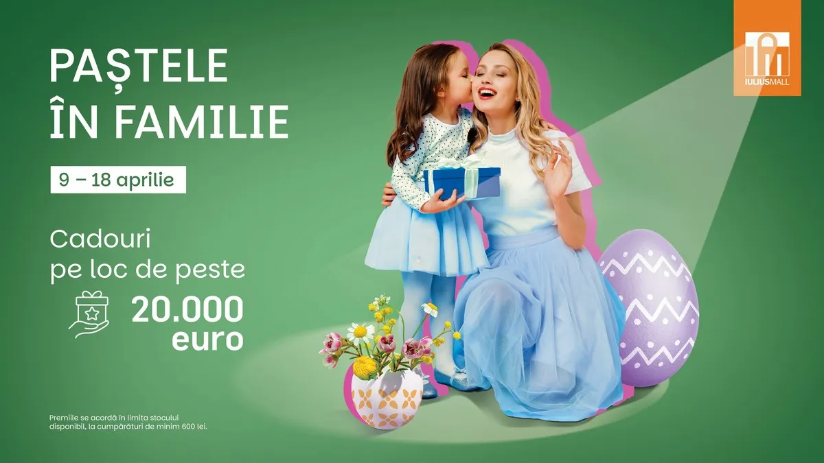 MEGA premii, în valoare de peste 20.000 de euro, la Iulius Mall Cluj! Intră în spiritul sărbătorilor de Paște și câștigă super cadouri