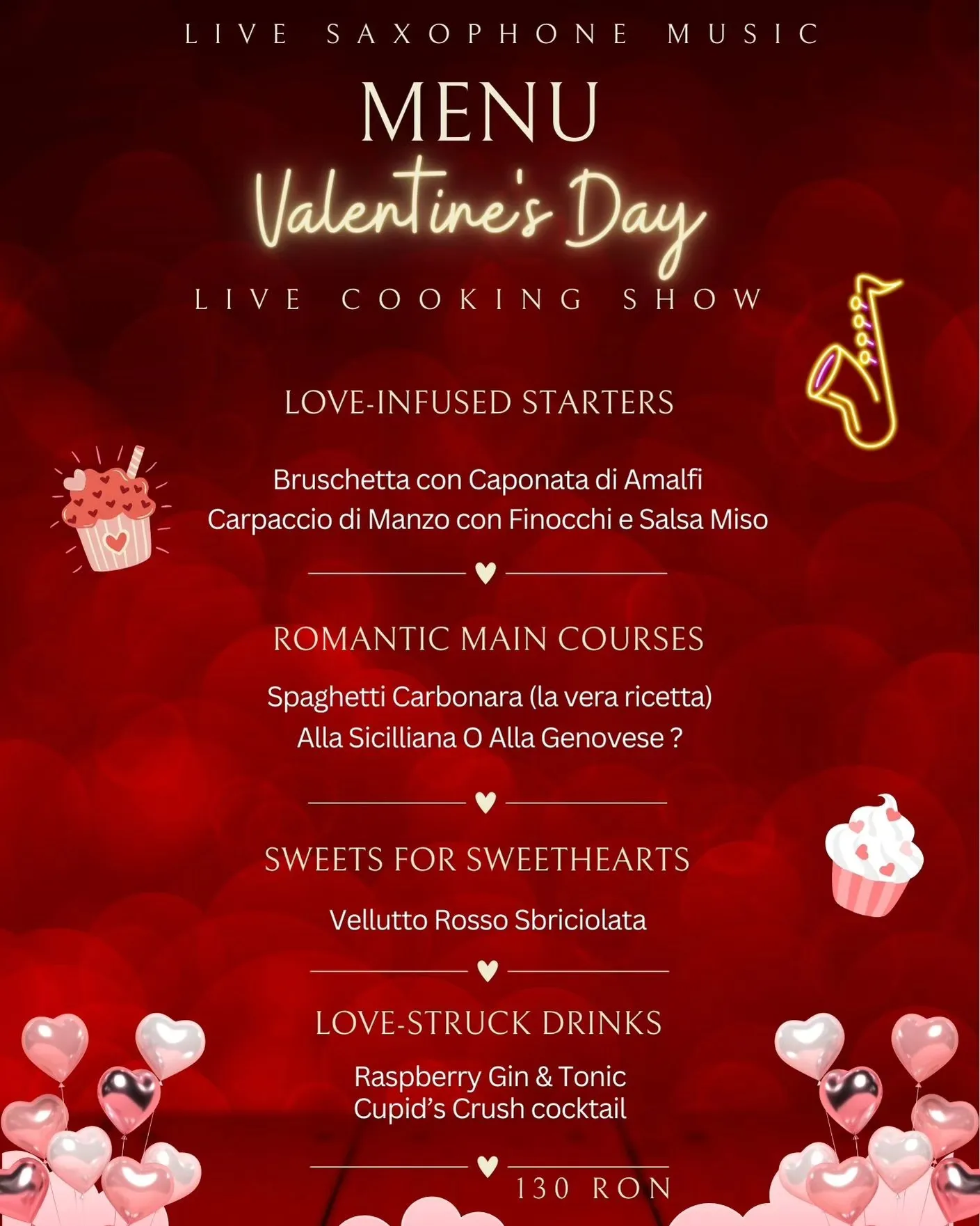 În seara de miercuri, 14 februarie, aici va fi organizat un live cooking cu preparate italiene, dar și muzică live de cea mai bună calitate.