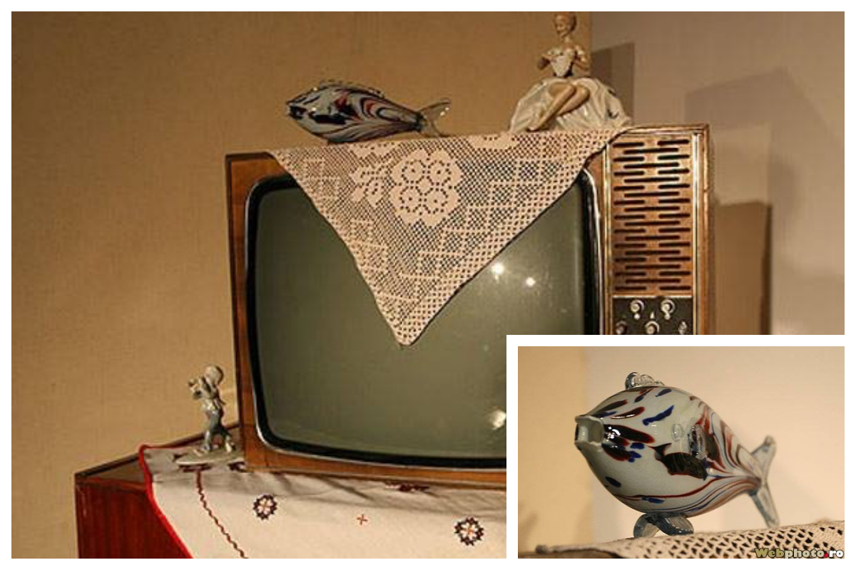 Peștele de sticlă care se așeza pe televizor reprezenta un important element de decor în sufrageriile din apartamentele românilor în perioada comunistă. Astăzi, puțini mai dețin astfel de bibelouri, transformându-le în piese de colecție apreciate!