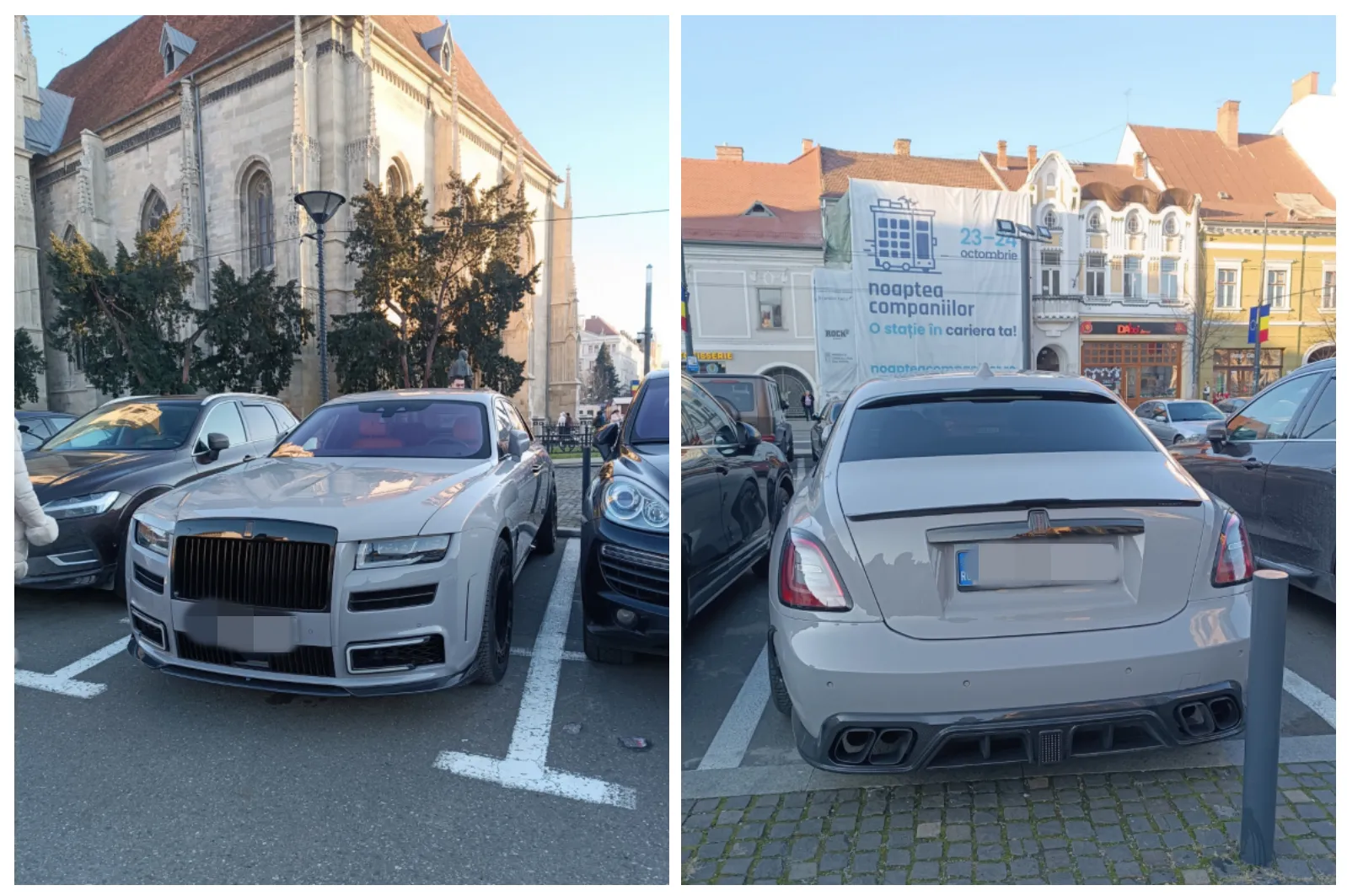 Un superb Rolls-Royce, de sute de mii de euro, surprins în centrul Clujului. Al cui este bolidul de lux, una dintre cele mai exclusiviste mașini din lume