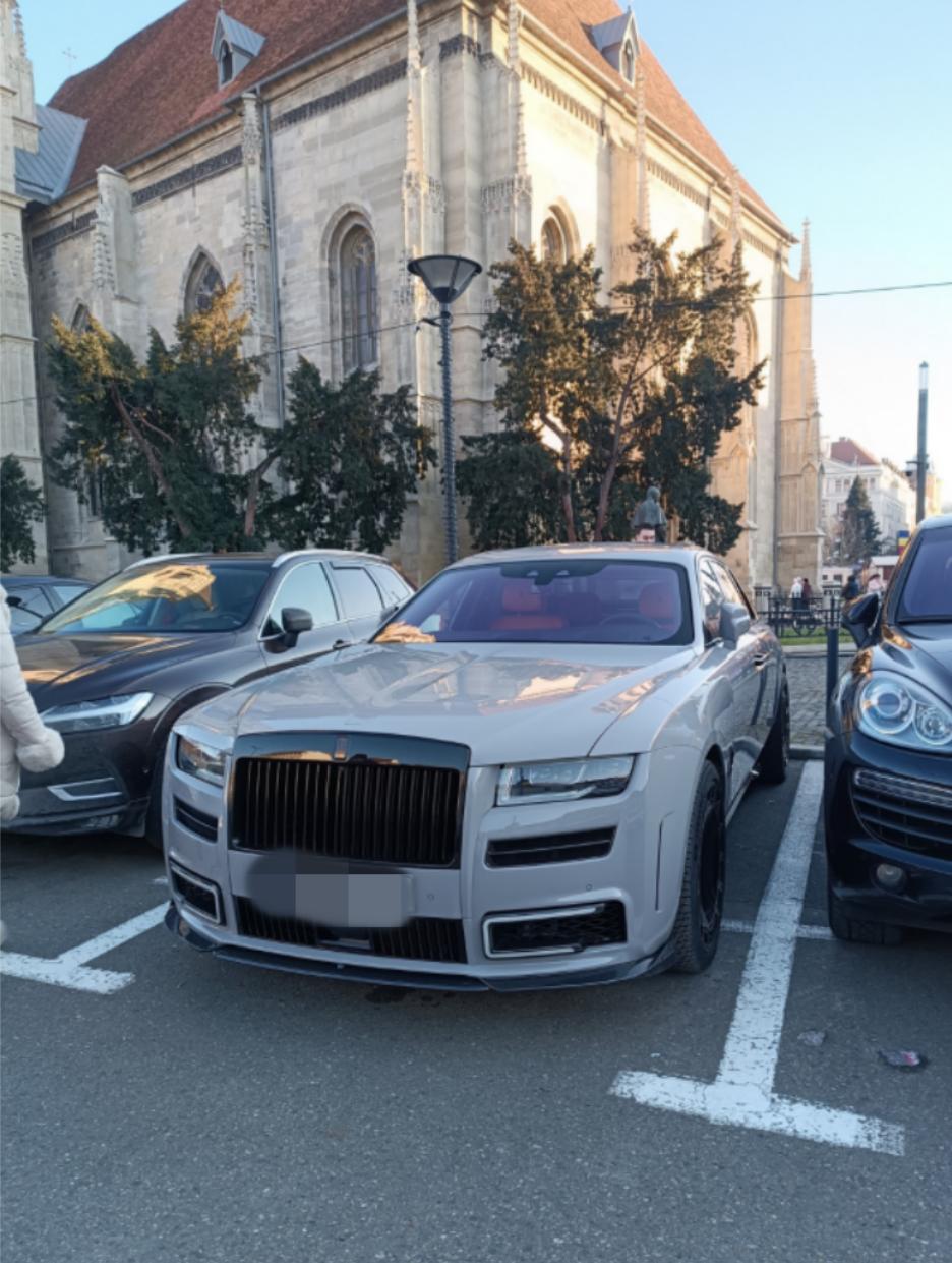 Superb Rolls-Royce Ghost surprins în Piața Unirii din Cluj-Napoca. Mașina aparține patronului unui cunoscut lanț de fast-food