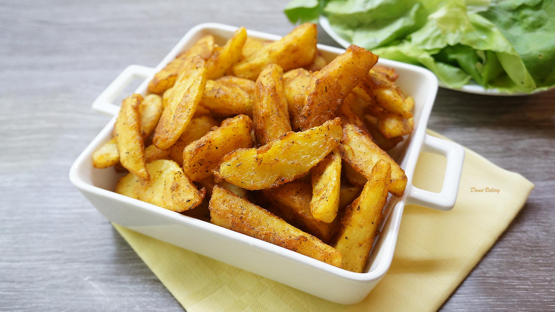 - Fierbeti cartofii până devin aurii si crocante, aproximativ 15-20 de minute, amestecându-i din cand in cand.