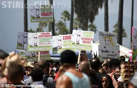 Protestatarii, care cer schimbarea Constitutiei, au protestat topless in Los Angeles. Ei au purtat pancarte pe care scria "Drepturi egale topless pentru toti sau deloc".