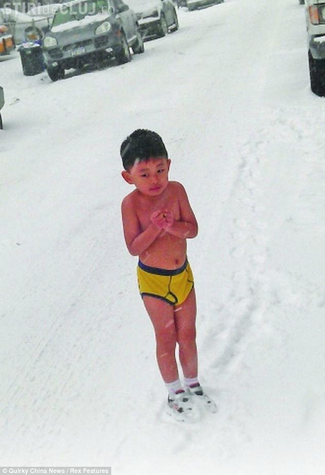 Baietelul Ho Yide, in varsta de patru ani a fost obligat de tatal lui sa se dezbarce si sa faca flotari la -13 grade Celsius. Cu toate acestea, tatal baiatului sustine ca fiul lui a acceptat voluntar sa se dezbrace si sa alerge in zapada.