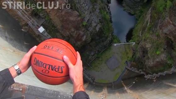 Un tanar a lăsat să cadă de pe un baraj urias, inalt de 126.5 metri, o minge de baschet. El a imprimat un efect balonului, care a început să ”zboare” purtat de curentii de aer