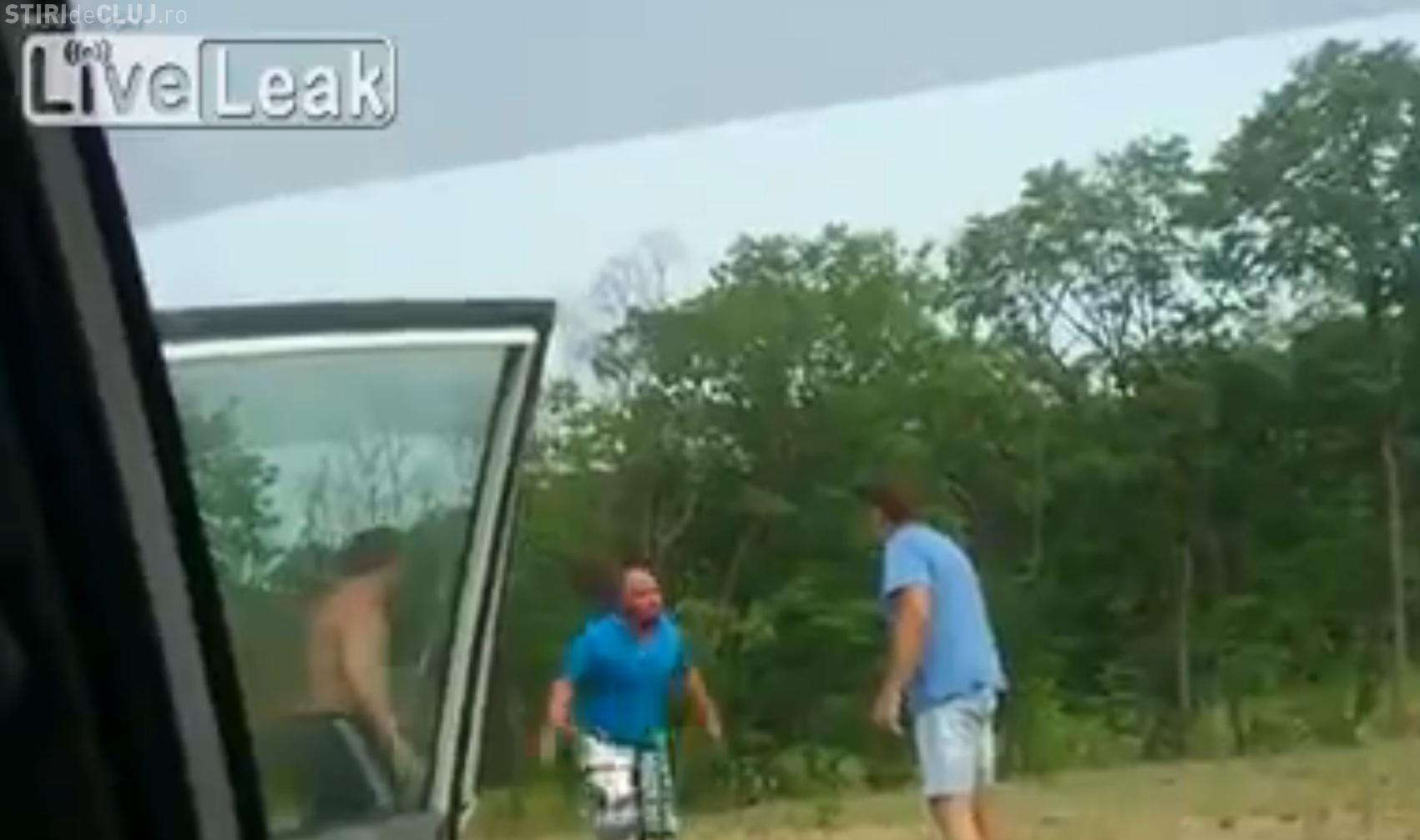 Surpriza a fost că șoferul din mașina blocată nu a stat pe gânduri și l-a ”rupt” în bataie pe cel care îl șicanase în trafic.