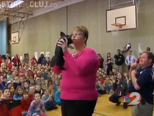 Pariul pe care Vicky Hudepohl, director adjunct al scolii primare Fairborn din Ohio, l-a pierdut cu elevii era legat de orele de lectura pe care acestia le-ar putea aduna, informeaza Daily Mail.
