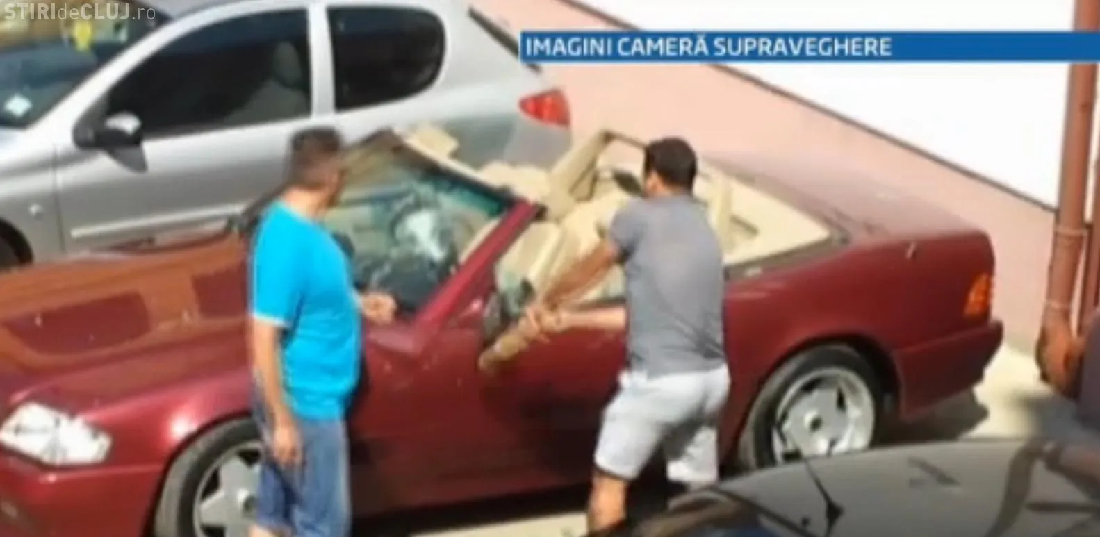 Soțul femeii s-a răzbunat pe șoferul care agresiv. A luat o bucată de lemn cu care i-a sparg geamul, oglinda și stopurile de la Mercedesul decapotabil.