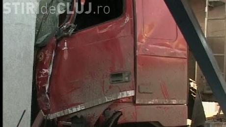 Un accident spectaculos s-a produs pe DN 1, la intrare in Sibiu. Soferul unui TIR a lovit un autoturism, a trecut printr-o parcare de 25 de metri si s-a oprit intr-o cladire de birouri.