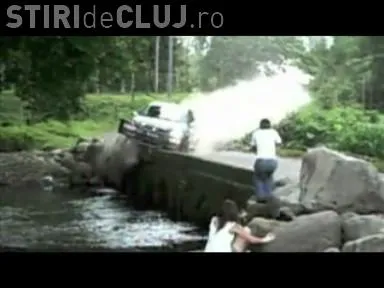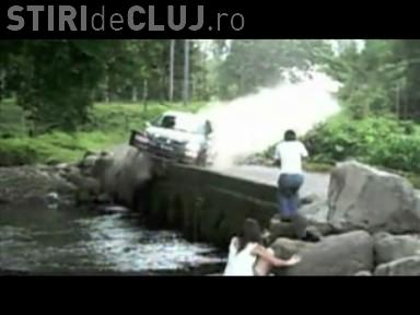 Accident spectaculos de raliu! Un pilot a ajuns cu masina intr-un rau - VIDEO