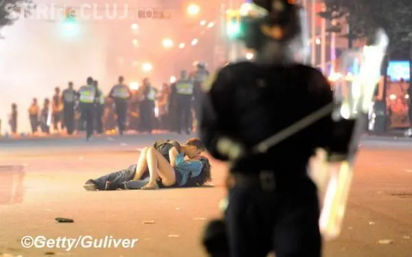 Fotografia a fost realizată în timpul protestelor unor suporteri din Vancouver, după ce echipa de hochei Vancouver Canucks a pierdut în faţa celor de la Boston Bruins. Fanii furioşi au ieșit pe străzi, dar în tot haosul un cuplu a pus în practică mesajul: ”Make love not war”.