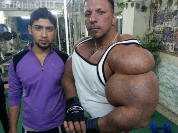 Sportivul şi-a injectat mult prea mult synthol, substanţă folosită de unii culturişti pentru a se ”umfla”, fără a avea forță musculatură.