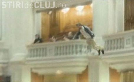 Adrian Sobaru, electrician in cadrul TVR, s-a aruncat de la balconul Parlamentului ieri, in timpul sedintei de plen, in semn de protest fata de masurile luate de guvernul Boc.