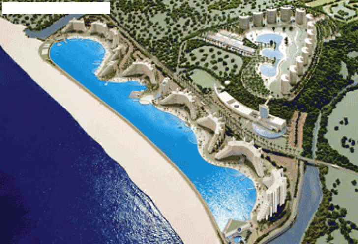 Piscina are o lungime de 1.013 metri, o suprafaţă de 8 hectare şi conţine 250.000 de metri cubi de apă, potrivit huffingtonpost.com. Apa din piscină este din ocean, dar este filtrată în prealabil.