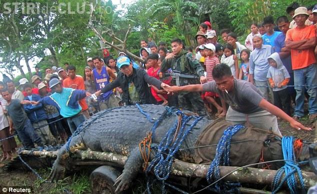 Capturarea crocodilului gigant a fost facuta de 100 de barbati, dupa o vanatoare care a durat 3 saptamani.